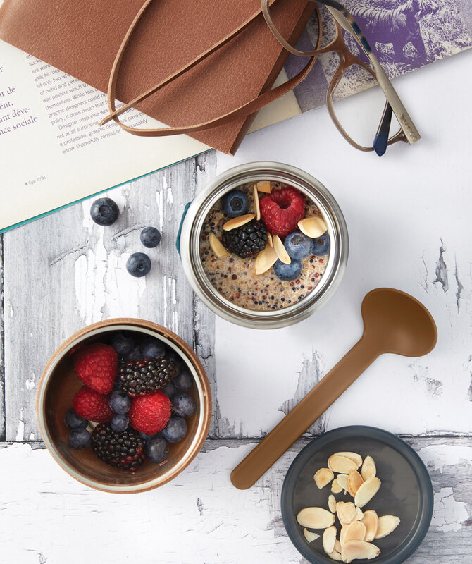 Inovovaná nádoba na potraviny, u které díky přidání spodní strany víka z nerezové oceli nepřichází potraviny do styku s plastem. K boxu je nově přidaná dřevěná lžíce a dárková krabička.