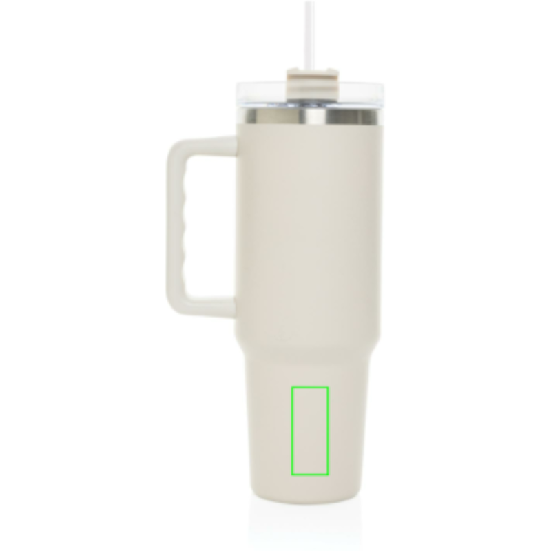 Termohrnek o objemu 1200 ml disponuje pohodlným držadlem a vejde se do většiny držáků na nápoje. Vnější strana je vyrobena z odolné recyklované nerezové oceli a je dvoustěnně vakuově izolovaná, díky čemuž jsou nápoje v ideální teplotě. Je vybaven víčkem odolným proti vylití nebo použití přiloženého brčka z recyklované oceli se silikonovou špičkou. Má certifikaci RCS, 29 % recyklovaného obsahu a neobsahuje BPA. Doporučujeme mýt ručně.