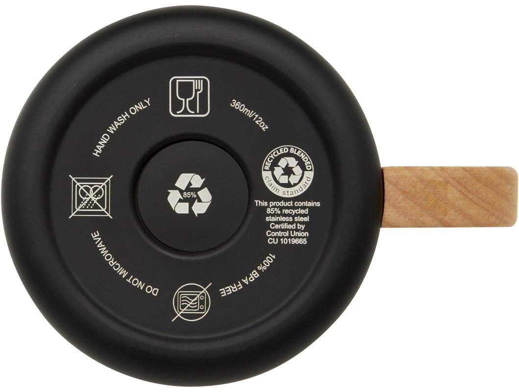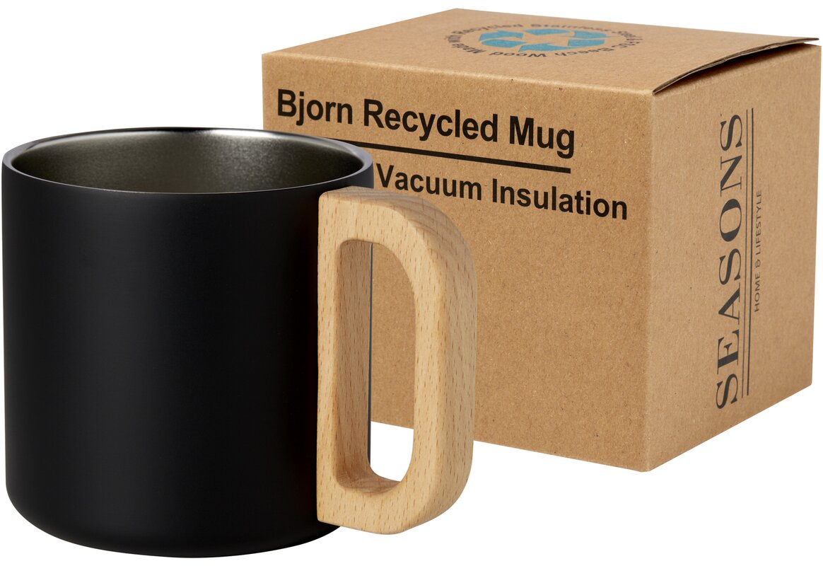 Termohrnek Bjorn je vyroben z recyklované nerezové oceli s certifikací RCS a rukojetí ze zodpovědně získaného bukového dřeva. Měděná vakuová izolace v hrnku pomáhá udržet nápoje v ideální teplotě po dlouhou dobu. Tento hrnek je skvělou alternativou k tradičním hrnkům, navržený tak, aby zabránil přenosu tepla na vnější stranu hrnku. Kapacita: 360 ml. Neobsahuje BPA.