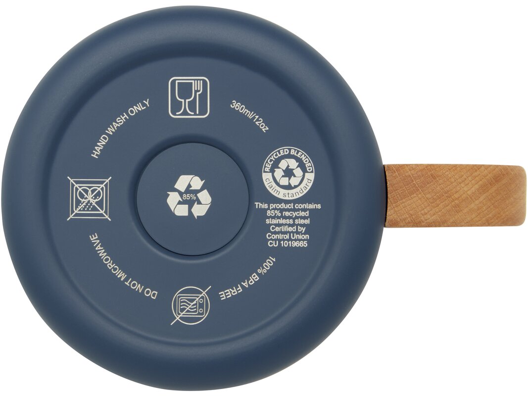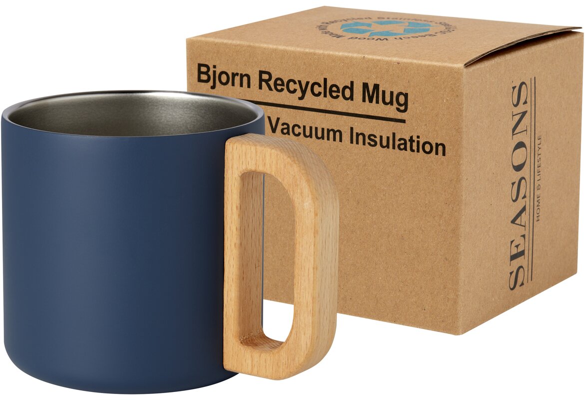 Termohrnek Bjorn je vyroben z recyklované nerezové oceli s certifikací RCS a rukojetí ze zodpovědně získaného bukového dřeva. Měděná vakuová izolace v hrnku pomáhá udržet nápoje v ideální teplotě po dlouhou dobu. Tento hrnek je skvělou alternativou k tradičním hrnkům, navržený tak, aby zabránil přenosu tepla na vnější stranu hrnku. Kapacita: 360 ml. Neobsahuje BPA.