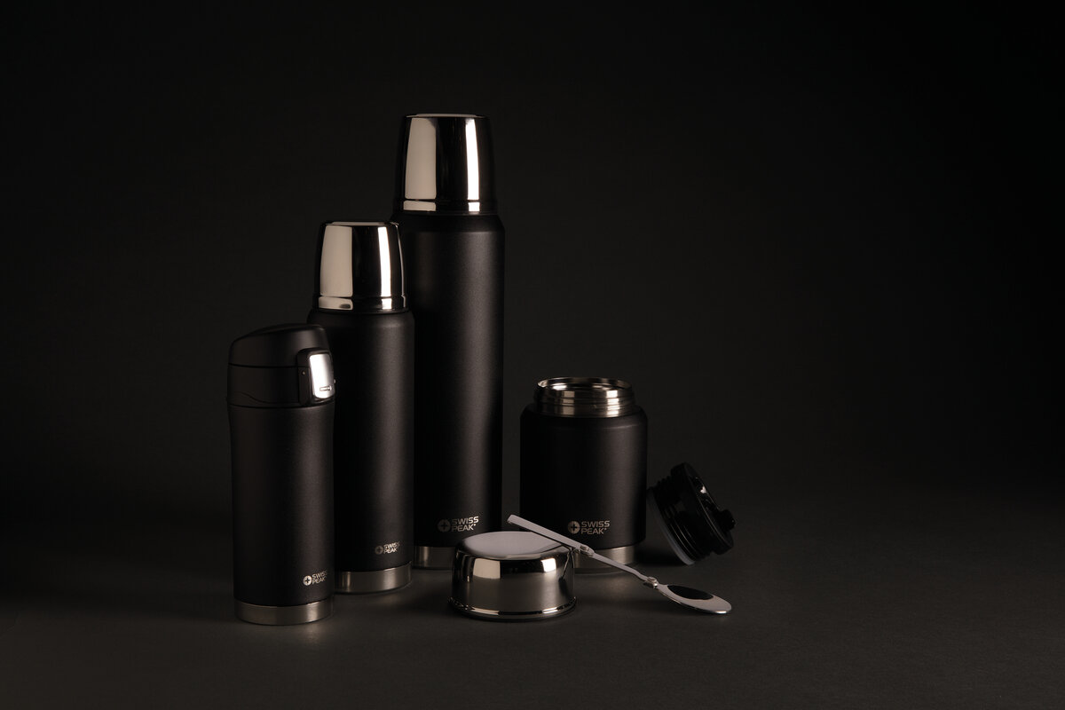 Řada Swiss Peak Elite vyčnívá použitím dvojstěnné vakuovo měděné izolace a nerezavějící oceli 18/8 na tento termohrnek. Produkt má objem 300ml. Obsahuje matný černý nástřik, který zaručeně vydrží bez vyblednutí či popraskání. Vnitřní stěna je osazena měděnou izolací, díky které vaše nápoje zůstanou horké po dobu až 8 hodin a studené až po 24 hodin. Produkt je určen pouze pro ruční mytí.