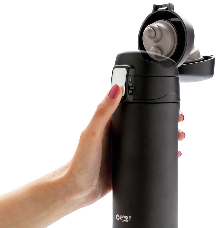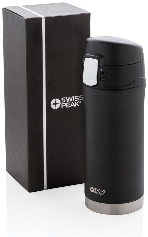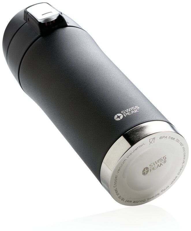 Řada Swiss Peak Elite vyčnívá použitím dvojstěnné vakuovo měděné izolace a nerezavějící oceli 18/8 na tento termohrnek. Produkt má objem 300ml. Obsahuje matný černý nástřik, který zaručeně vydrží bez vyblednutí či popraskání. Vnitřní stěna je osazena měděnou izolací, díky které vaše nápoje zůstanou horké po dobu až 8 hodin a studené až po 24 hodin. Produkt je určen pouze pro ruční mytí.