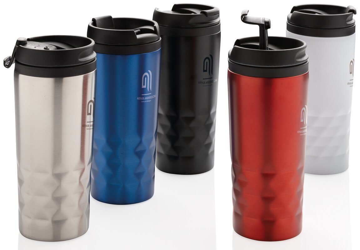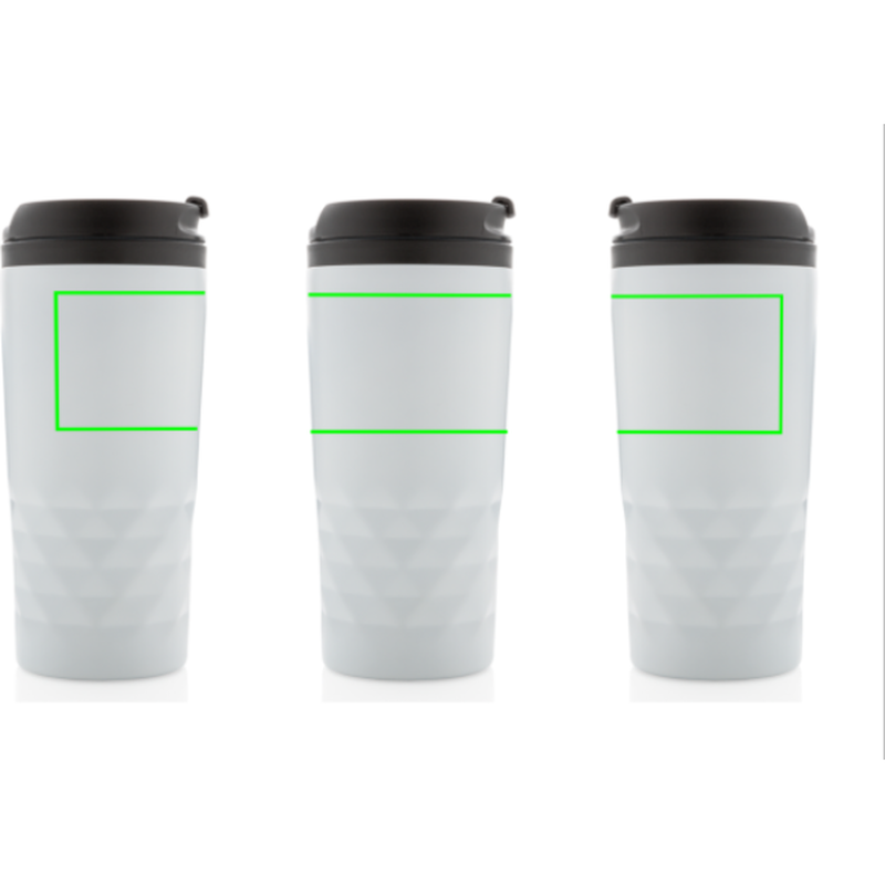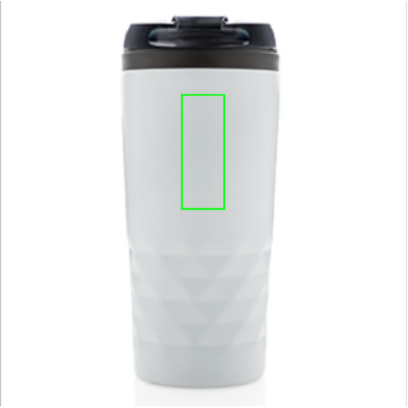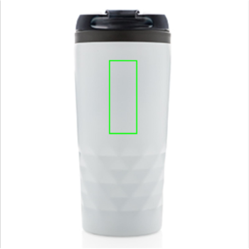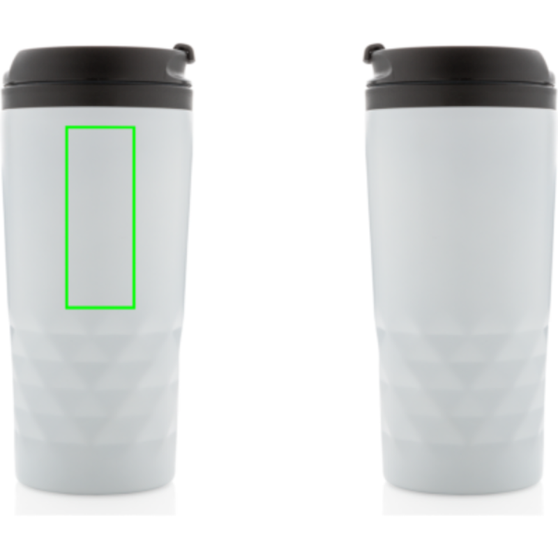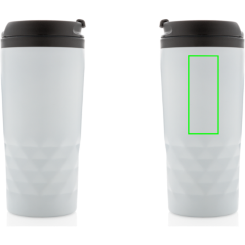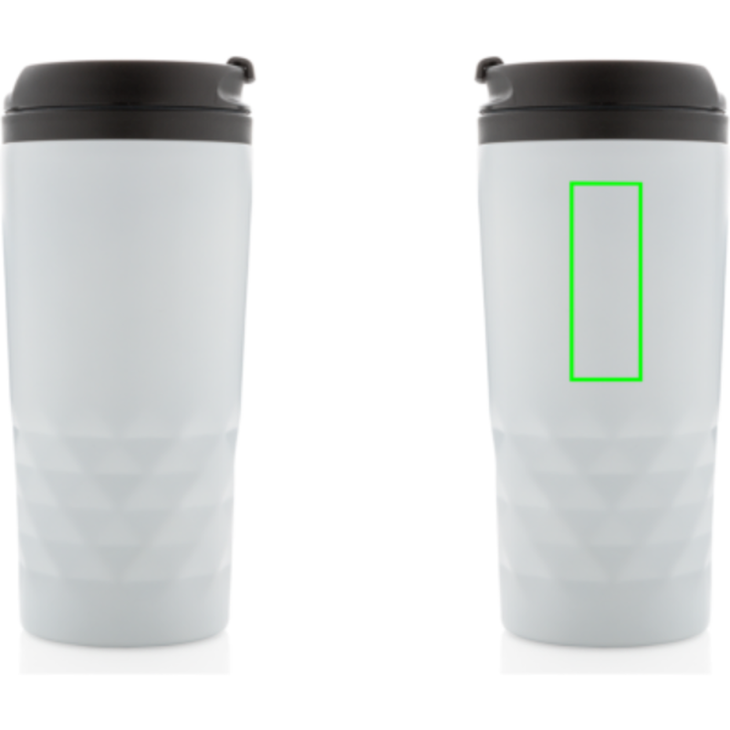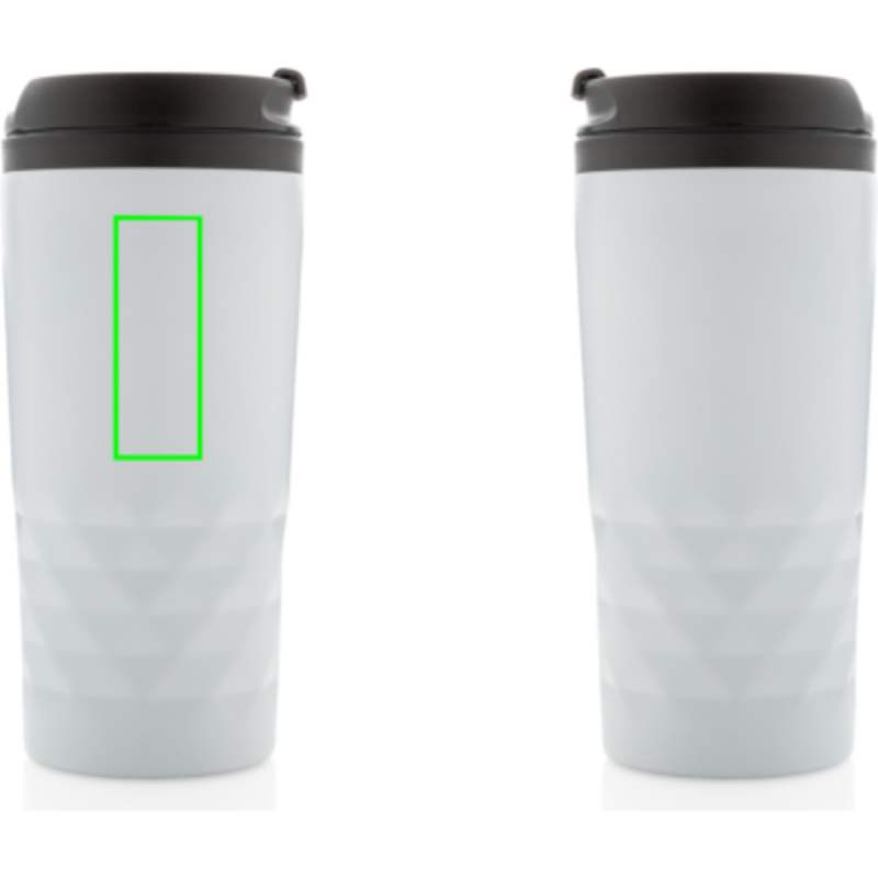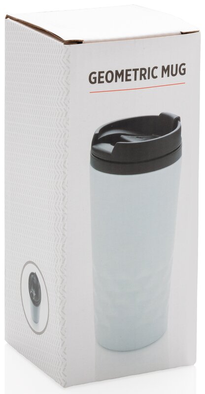 Módní termohrnek z nerezavějící oceli s geometrickým vzorem. Vnitřní tělo vyrobeno z PP. Pouze pro ruční mytí. Objem 300ml.