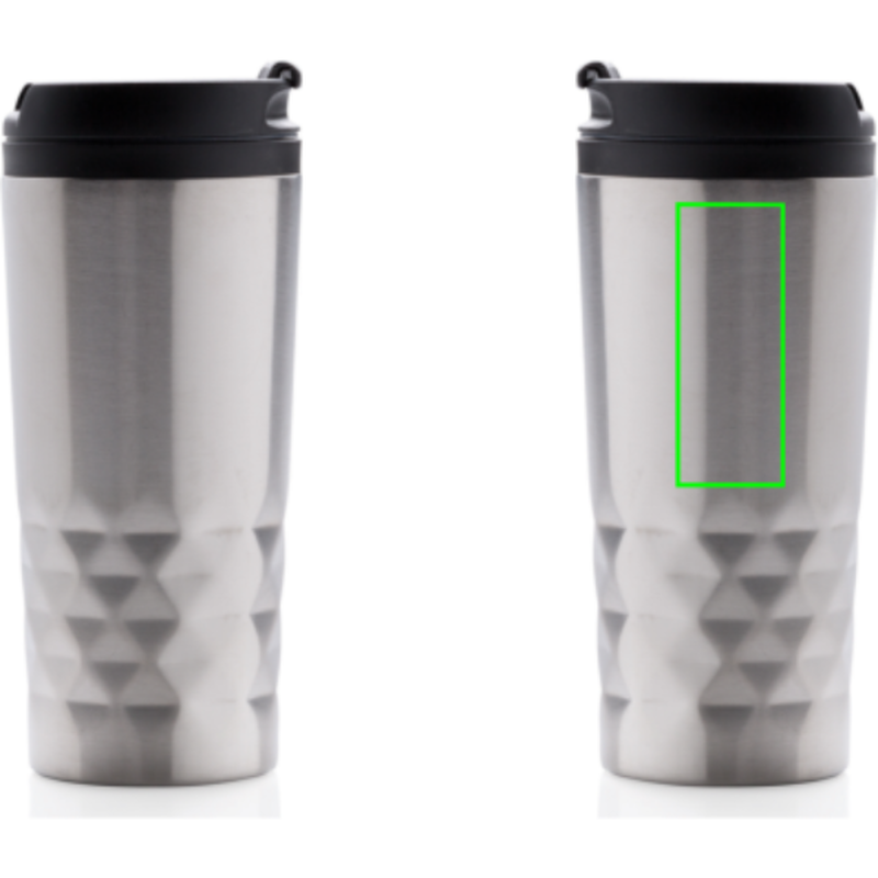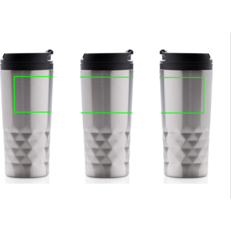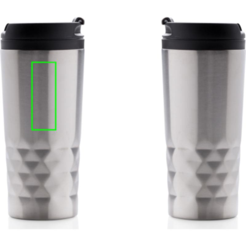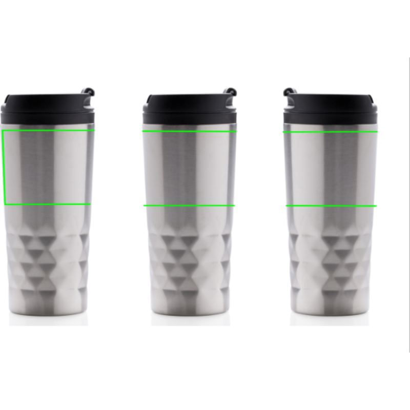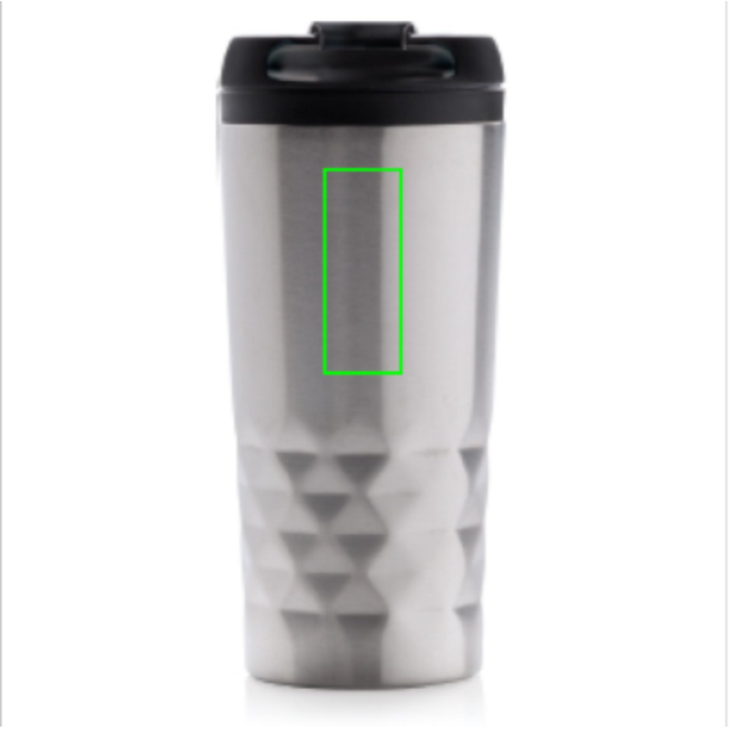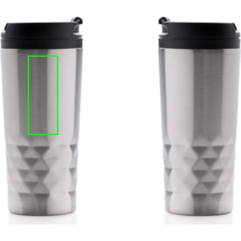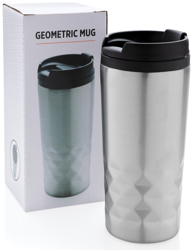 Módní termohrnek z nerezavějící oceli s geometrickým vzorem. Vnitřní tělo vyrobeno z PP. Pouze pro ruční mytí. Objem 300ml.