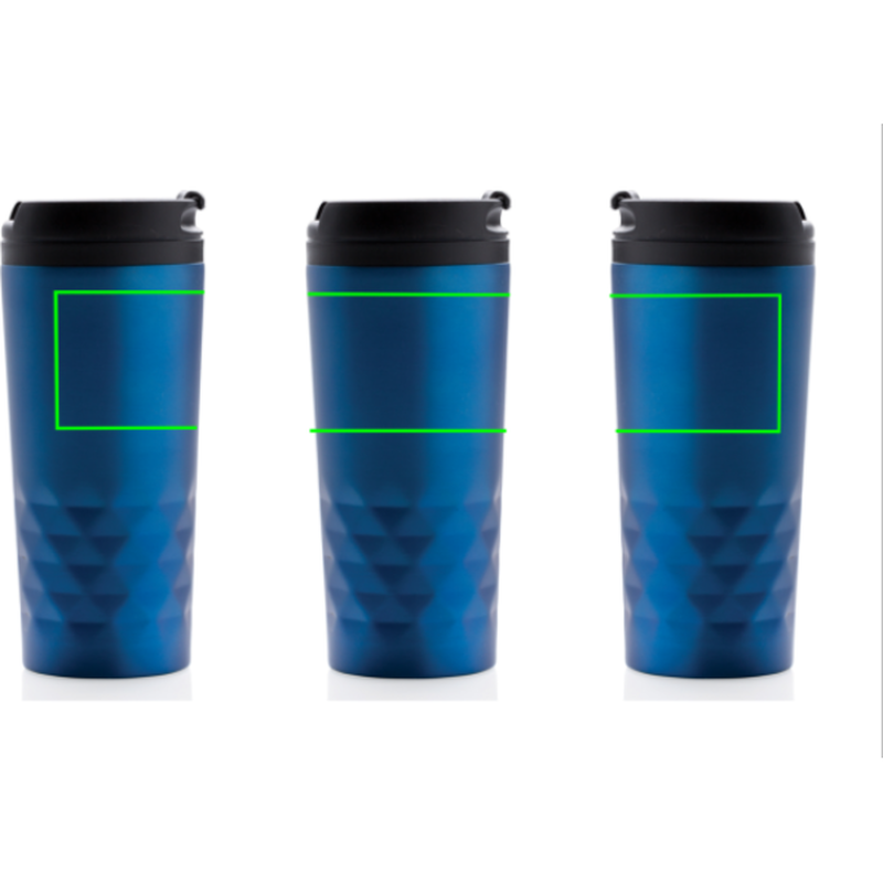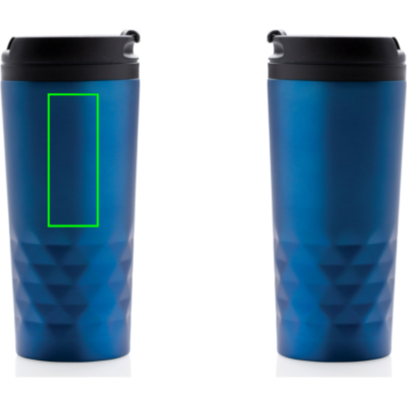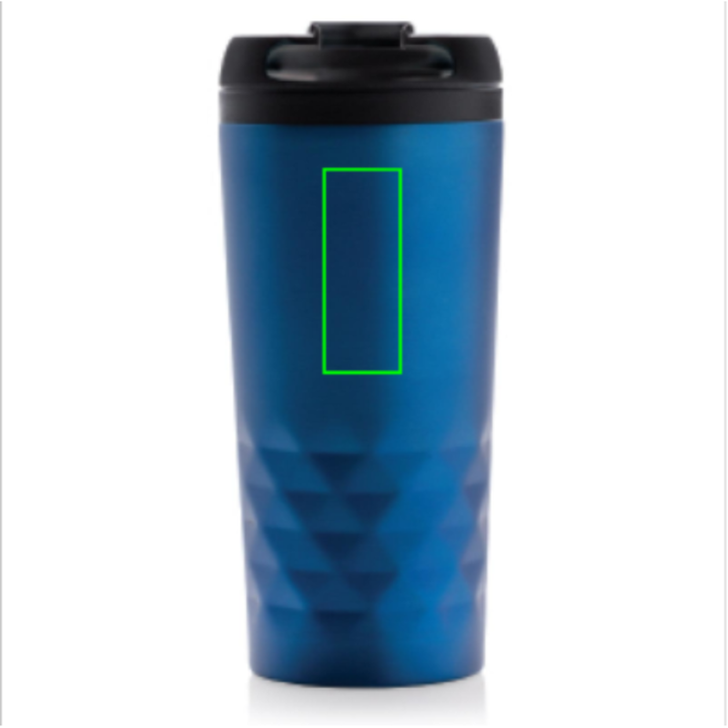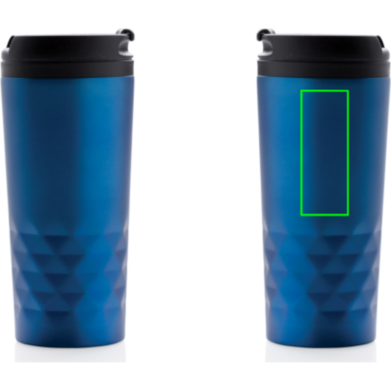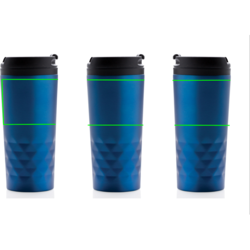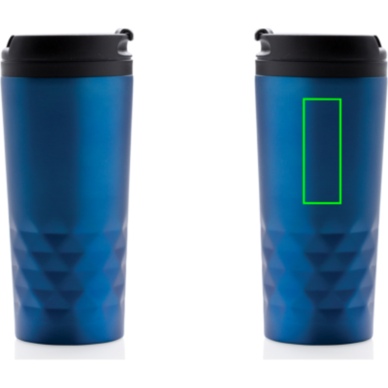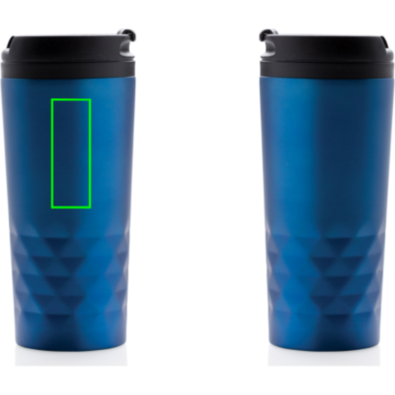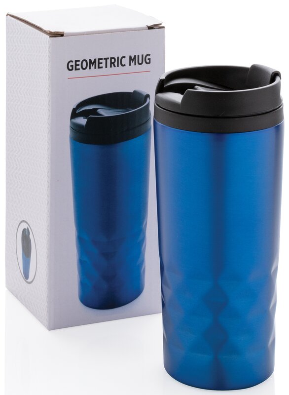 Módní termohrnek z nerezavějící oceli s geometrickým vzorem. Vnitřní tělo vyrobeno z PP. Pouze pro ruční mytí. Objem 300ml.