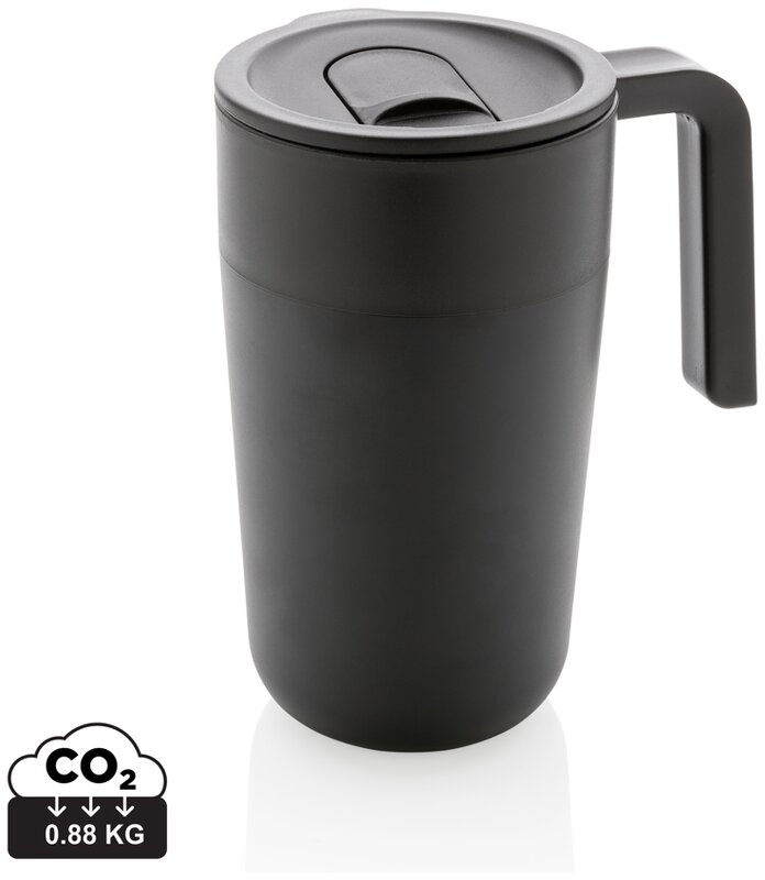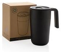 Termohrnek s madlem z GRS recyklované oceli a plastu, 480ml Černá 030.711