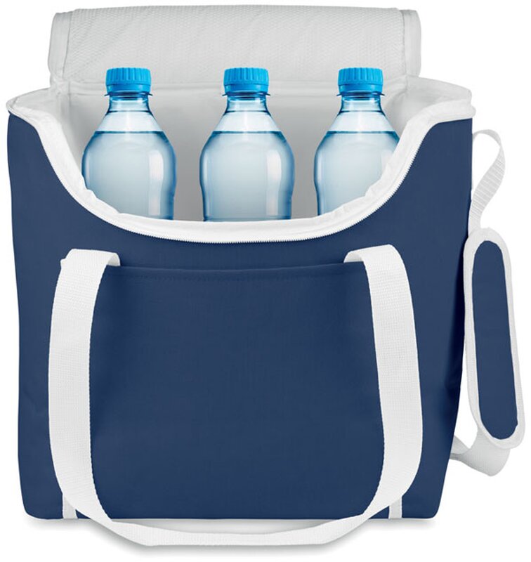 Chladicí taška ze 600D polyesteru s PEVA podšívkou a jednou postranní kapsou.