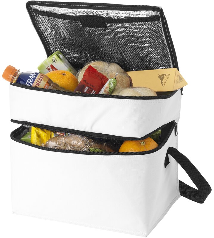 Chladicí taška s dvěma samostatnými oddíly na zip a s nastavitelným ramenním popruhem. Příslušenství není součástí. Polyester 600D.