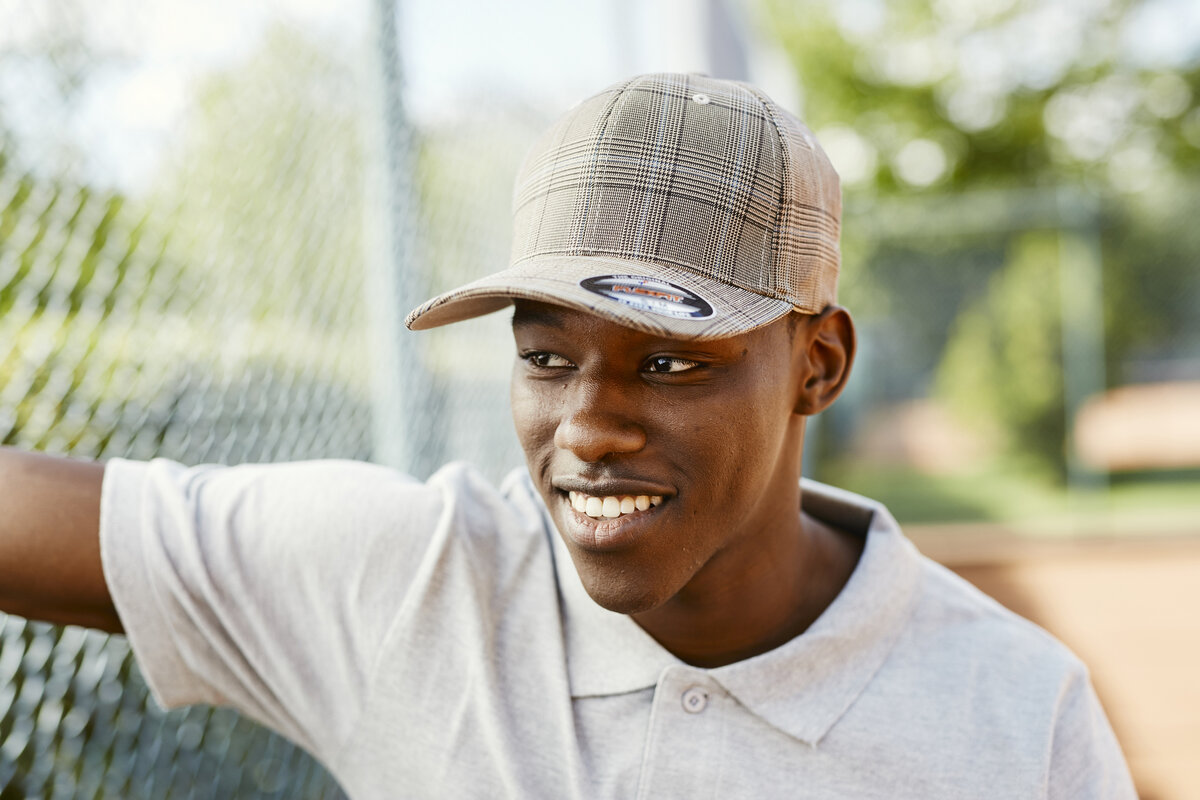Kšiltovka s trendy kostkovaným vzorem má zahnutý kšilt, uzavřenou zadní část bez zapínání a vystuženou přední část.