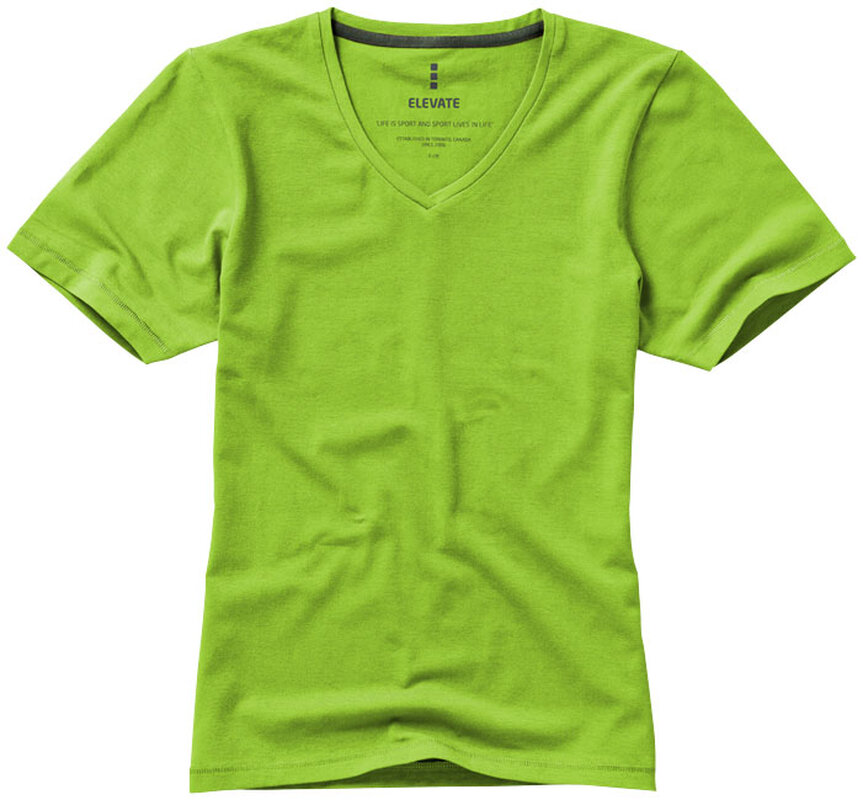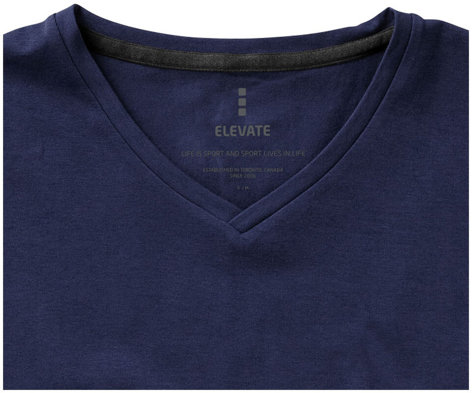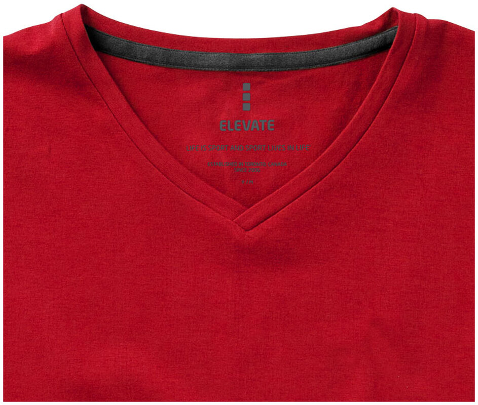 Dámské triko KAWARTHA s krátkým rukávem a výstřihem do V. Kolárek ve shodné tkanině. Potisk loga na zádech. Hedvábný průramek. Detaily s vybraným stehem. Super jemná stretchová bavlněná tkanina, která zajistí měkký pocit pro pokožku. Detaily s vybraným stehem. Jednolícní žerzejový úplet - 95% biobavlna z prstencové příze a 5% elastan. Gramáž trička je 200 g/m².