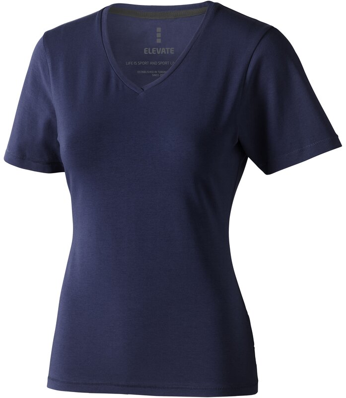 Dámské triko KAWARTHA s krátkým rukávem a výstřihem do V. Kolárek ve shodné tkanině. Potisk loga na zádech. Hedvábný průramek. Detaily s vybraným stehem. Super jemná stretchová bavlněná tkanina, která zajistí měkký pocit pro pokožku. Detaily s vybraným stehem. Jednolícní žerzejový úplet - 95% biobavlna z prstencové příze a 5% elastan. Gramáž trička je 200 g/m².