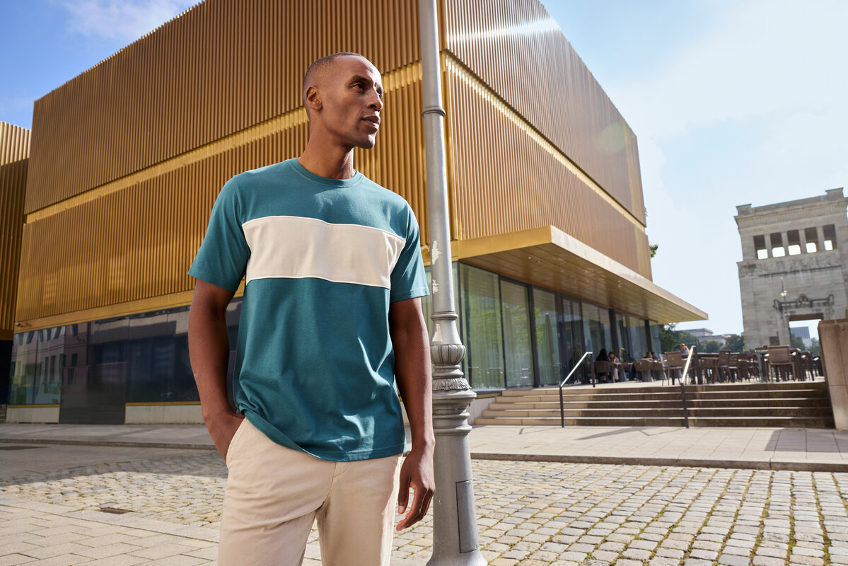 Unisex tričko se širokým kontrastním pruhem z příjemné bio bavlny.