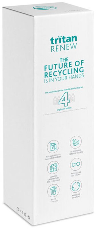 Láhev na vodu z materiálu Tritan Renew™, který neobsahuje BPA s nerezovým víčkem.