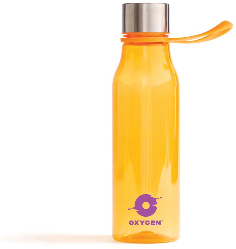 Praktická láhev na vodu vyrobená z tritanového plastu bez obsahu BPA. Poutko na víku umožňuje snadné zavěšení například na cvičební stroj a láhev je díky svému ideálnímu tvaru vhodná pro většinu držáků na nápoje. Láhev se snadno čistí. Možnost přidání potisku. Objem:600 ml