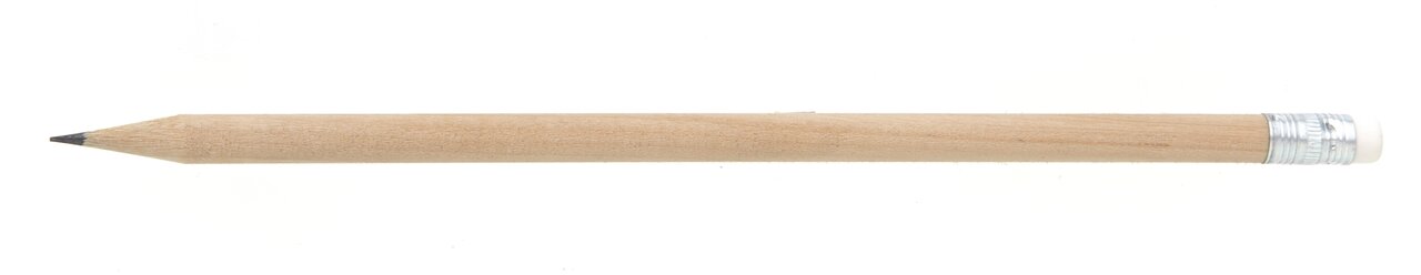 Kulatá, přírodní, dřevěná, grafitová tužka HB s bílou gumou, ořezaná. Rozměr 190 x 6 mm.