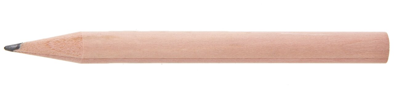 Krátká, dřevěná, kulatá, grafitová tužka HB v přírodní barvě. Rozměry 85 x 6 mm. Baleno po 100 ks.