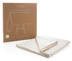 Ubrus značky Ukiyo na jídelní stůl, který je navržen v neutrálním designu. Ubrus má velikost: 250 x 140 cm a je vyrobený ze 180g recyklované bavlny, včetně skenovatelné složky AWARE™ garantující obsah recyklátu. Výrobou bylo uspořeno 5465,7 litrů vody. Z výtěžku každého prodaného produktu z kolekce Impact je navíc přispěno 2 % na podporu iniciativy Water.org.