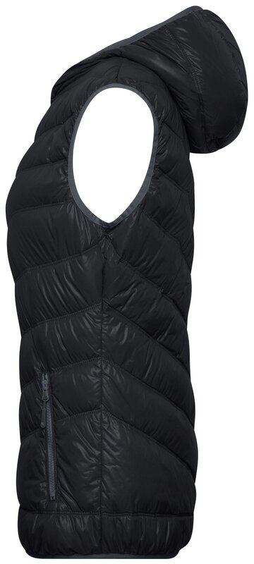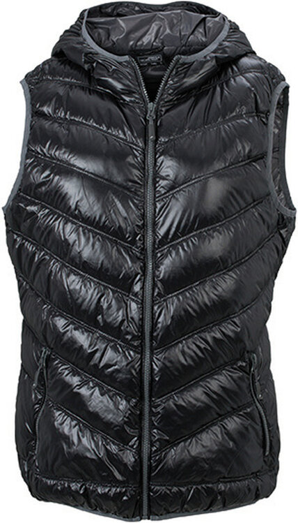 Dámská vesta James & Nicholson Ladies Down Vest. Ultra lehká péřová vesta s kapucí v ležérním stylu. Vnější materiál: 100% polyamid. Podšívka: 100% polyamid. Měkká, lehká, větru a vodě odpuzující tkanina. Vesta se dá snadno složit do samostatného odděleného sáčku. Má dvojité švy. Kontrastní vnitřní prošívání a zipy, Kapuce a lemy v kontrastní barvě, 2 boční kapsy na zip. 2 vnitřní kapsy. Vesta má zúžený střih.