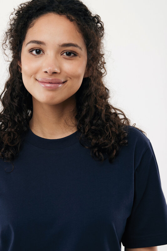 Unisex tričko moderního střihu je vyrobeno ze 100% bavlny, z čehož 50 % tvoří recyklovaná a 50 % organická bavlna, s gramáží 220 g/m². Tričko má kulatý výstřih s 1x1 žebrováním. Použití skutečně recyklovaných a organických materiálů a všechna environmentální tvrzení jsou ověřena technologií AWARE™. Produkt je certifikován podle OEKO-TEX® STANDARD 100 Centexbel. Vzhledem k povaze recyklované příze se mohou objevit drobné nečistoty a barevné odchylky.