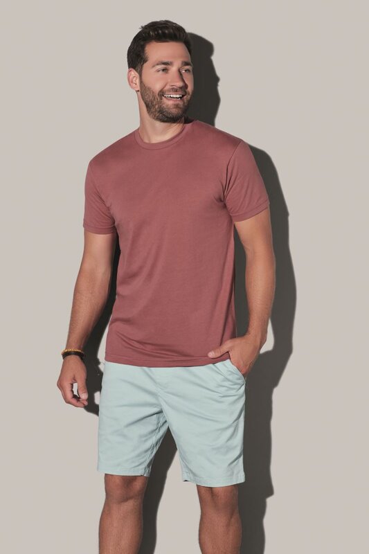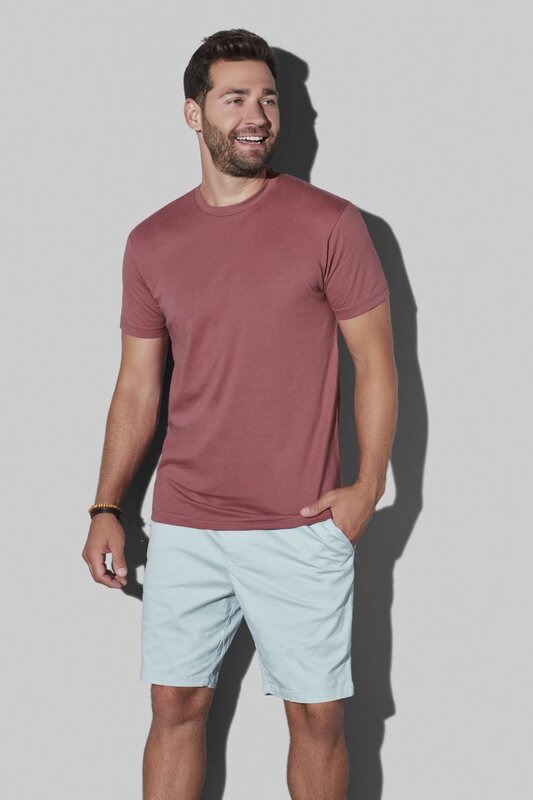 Single jersey úplet v gramáži 145 g/m² zajišťuje lehkost a prodyšnost, zatímco varianta heather grey obsahuje příměs polyesteru pro větší odolnost a tvarovou stálost.