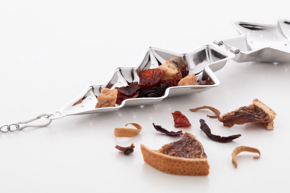 Nerezové čajítko na vánoční čaj s řetízkem a klipem. S potisknutelnou plochou na jedné straně.