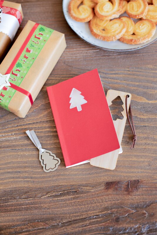 Bambusová záložka do knihy s vyřezaným vánočním motivem stromečku. Součástí je poutko z PU kůže.