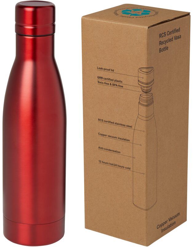 Vasa měděná vakuově izolovaná láhev z recyklované nerezové oceli s certifikací RCS 500ml Červená 043.370