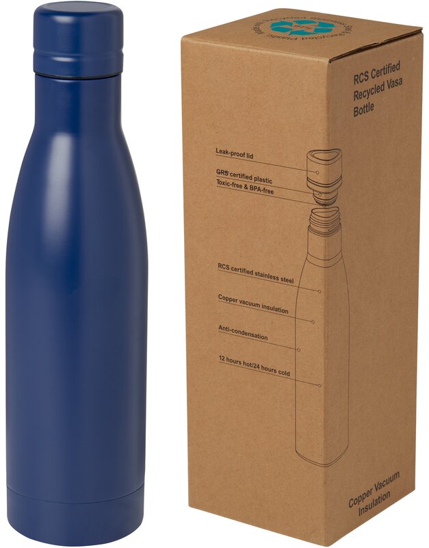 Vasa měděná vakuově izolovaná láhev z recyklované nerezové oceli s certifikací RCS 500ml Modrá 043.370