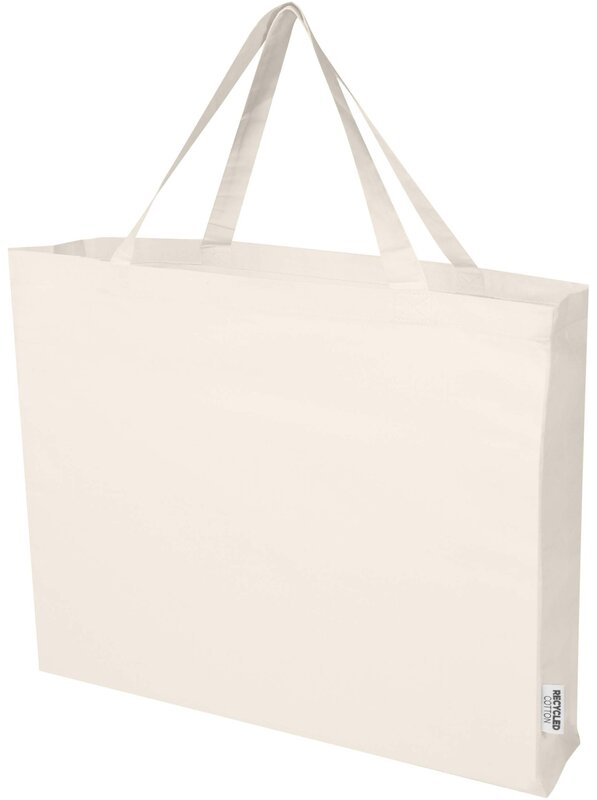 Nákupní taška Odessa vyrobená ze 100% recyklované bavlny s certifikací GRS je navržena pro pohodlné nošení s 30 cm dlouhými uchy přes rameno a velkým hlavním prostorem s klínkem.