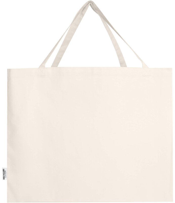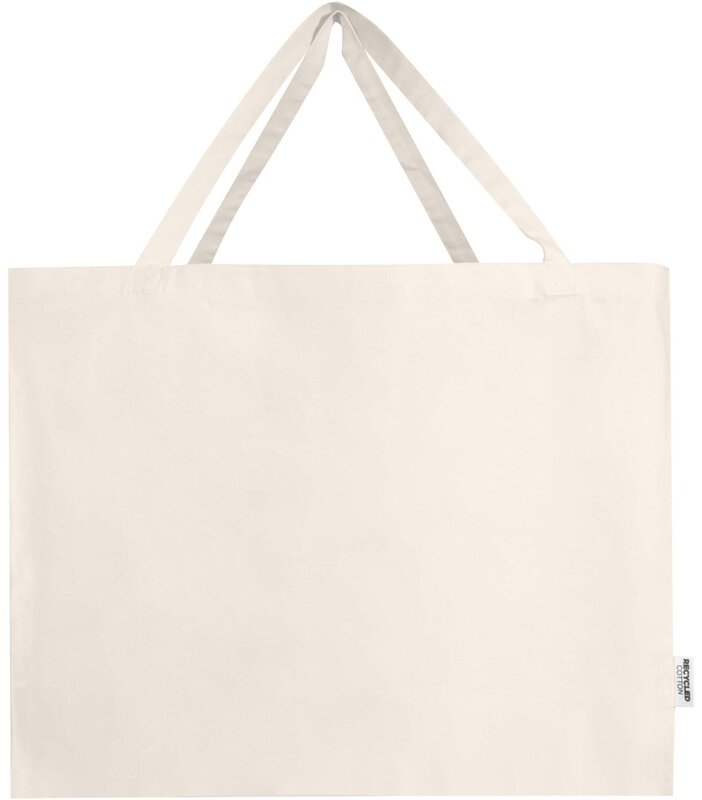 Nákupní taška Odessa vyrobená ze 100% recyklované bavlny s certifikací GRS je navržena pro pohodlné nošení s 30 cm dlouhými uchy přes rameno a velkým hlavním prostorem s klínkem.