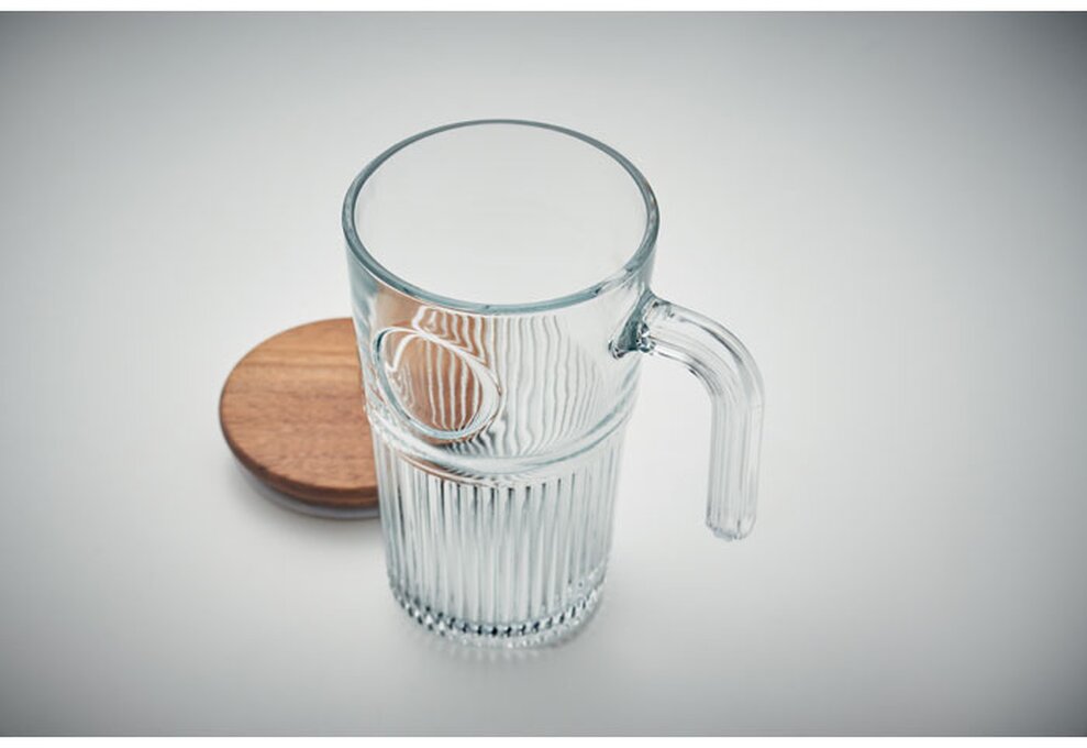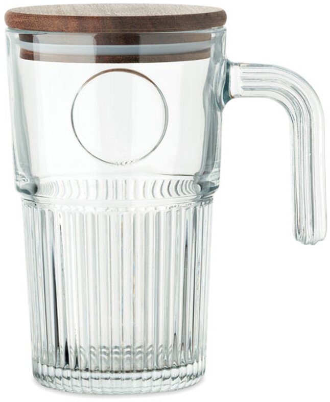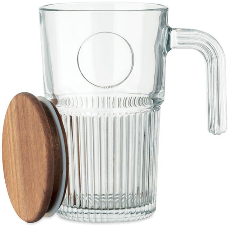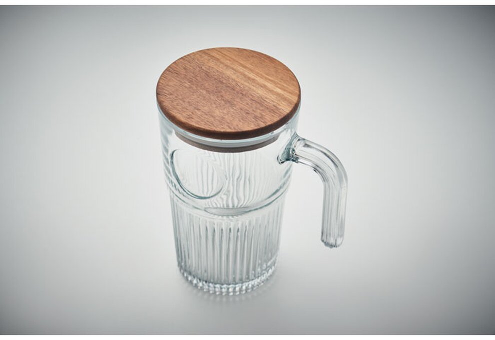 Velký skleněný hrnek s akáciovým víčkem. Objem 450 ml. FSC®-certified | FSC 100%, W16.3, FSC-C213206