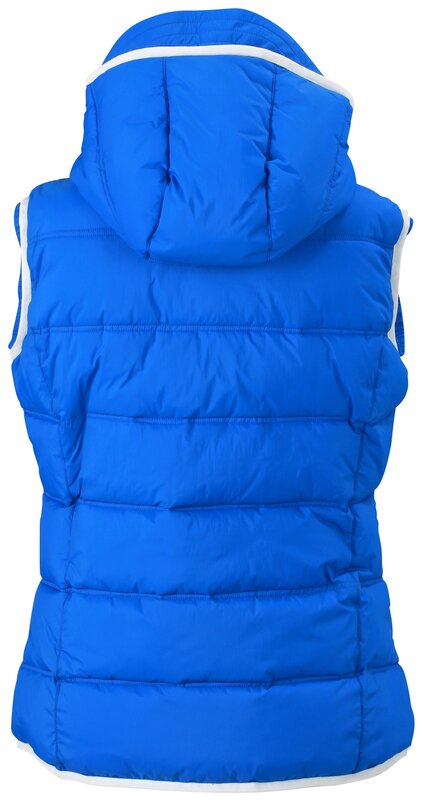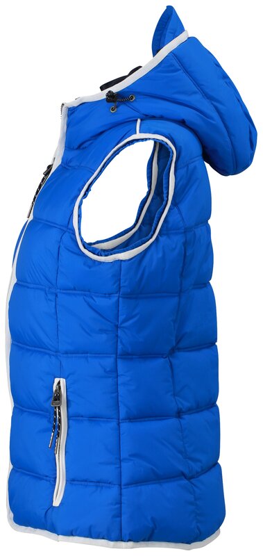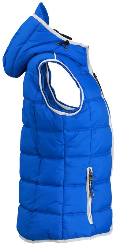 Módní dámská vesta s kapucí v designu pro jachting, ale i do práce i pro volný čas. Matný povrch s vrstvou odpuzující vodu, vodě a větru odolná (600 mm vodní sloupec), 2 kapsy na zip, náprsní kapsa, zapínání až ke krku. Bunda má zipy a doplňky v kontrastní barvě a elastické průramky. Balení: 1/20 (ks v jednom sáčku / celkem ks v kartonu).