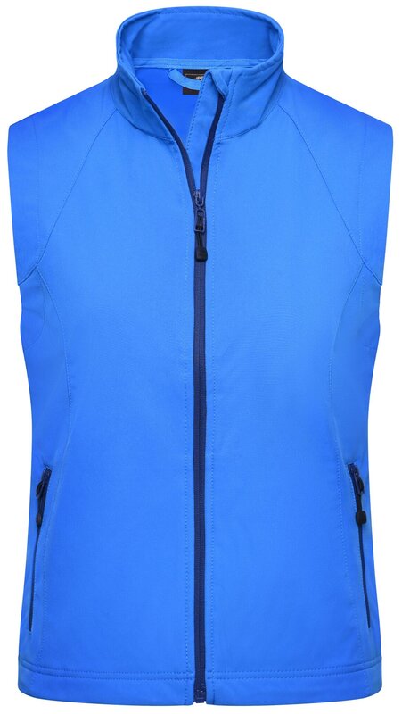 Stylová dámská softshellová vesta James & Nicholson s 2 bočními kapsami na zip, 2 vnitřními kapsami a elastickou stahovací šňůrkou s uzávěrem na lemu. Vnější materiál: 90% polyester, 10% elastan. Větru a vodě odolná vrstva 3funkční textilie s PU membránou (2.000 mm vodního sloupce). Měkká a pružná textilie. Hmotnost 270 g/m². Balení: 1/20 (ks v jednom sáčku / celkem ks v kartonu).