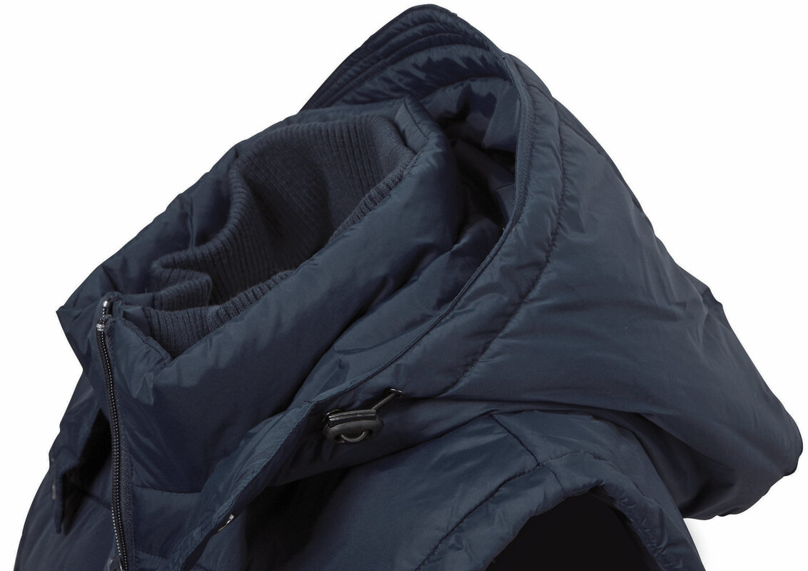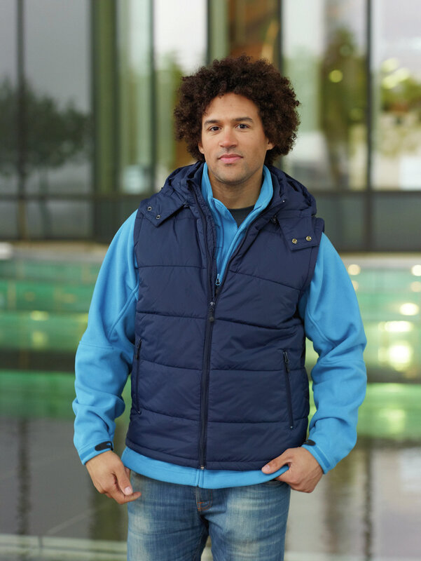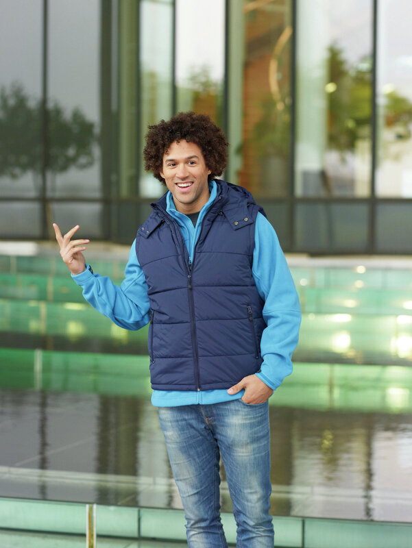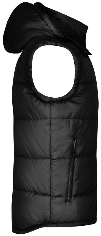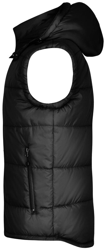 Prošívaná módní pánská vesta James & Nicholson s odnímatelnou kapucí. Vnější materiál: 100% polyamid. Vnitřní materiál: 100% polyester. Vycpávka: 100% polyester. Bunda je větru a vodě odolná (600 mm vodního sloupce). Má 2 přední kapsy, náprsní kapsu a vnitřní kapsu na mobil. Elastická šňůra se zarážkami na kapuci a spodním lemu. Balení: 1/20 (ks v jednom sáčku / celkem ks v kartonu).