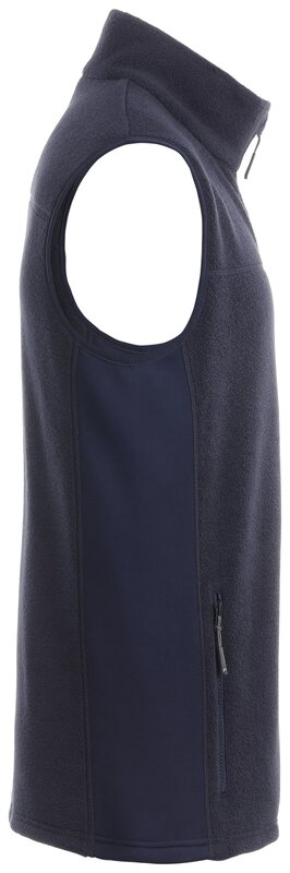 Pracovní fleecová vesta v mixu materiálů, anti-pilling mikro fleece, elastické softshellové vsady v kontrastní barvě na bocích, límec stojáček, 2 kapsy na zip, zip s ochranou brady , 1/30 , (ks v jednom sáčku / celkem ks v kartonu).