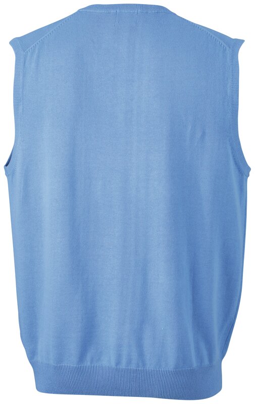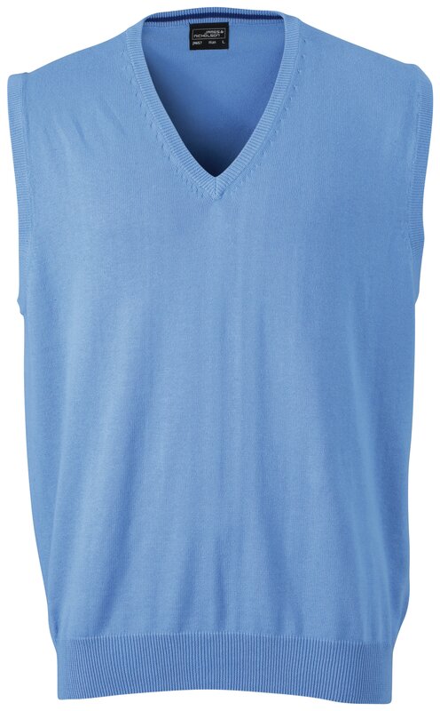 Pánská vesta / svetr bez rukávů James & Nicholson Mens V-Neck Pullunder. Klasický bavlněný svetr bez rukávů. Vnější materiál: 100% česaná bavlna - lehká pletenina. Výstřih do V. Lze prát v pračce, vypasovaný střih. Gramáž vesty je 260 g/m². Balení: 1/30 (ks v jednom sáčku / celkem ks v kartonu).