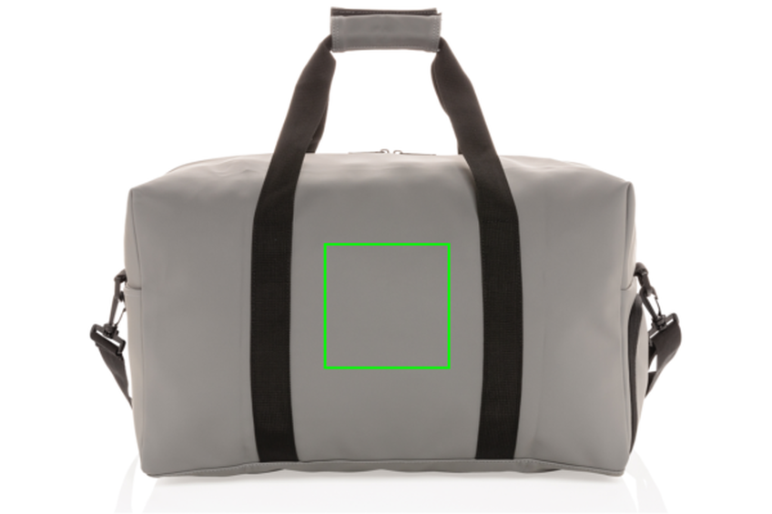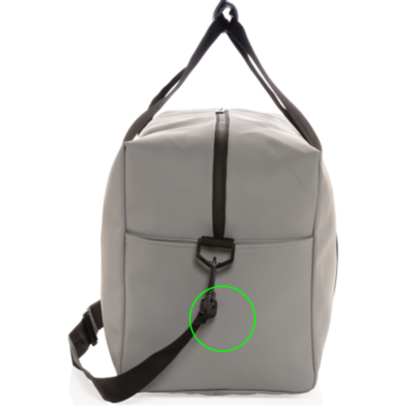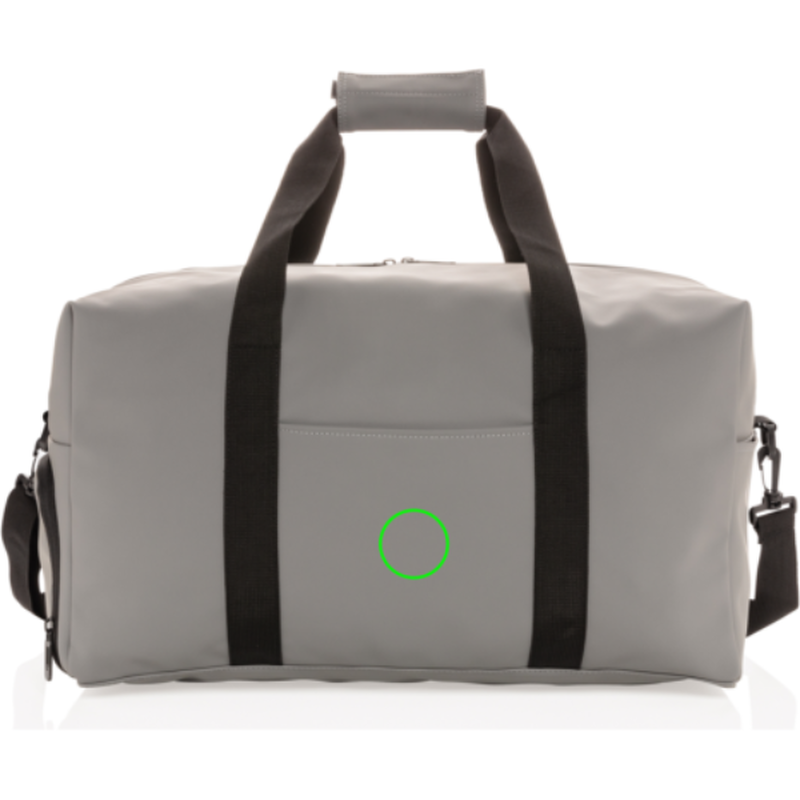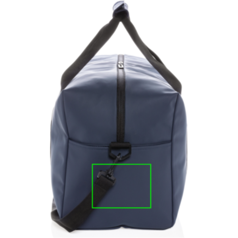 Víkendová taška vyrobená z hladkého PU vhodná na krátké víkendové výlety nebo na sport. Je udělaná do minimalistického hranetého provedení, obsahuje prostorný hlavní oddíl, vnitřní kapsu a vnější přední kapsu a praktický postranní oddíl na obuv. Má přizpůsobitelný ramenní popruh a pevná ucha pro nošení v rukou. Vnější část z PU, vnitřní část z 210D polyesteru. Bez PVC.