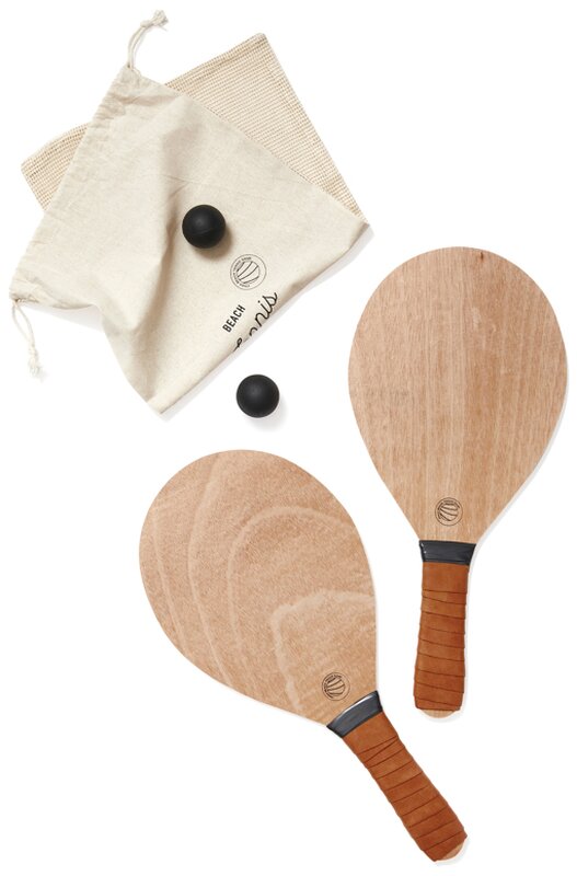 Elegantní sada na plážový tenis, která je vyrobená z topolového dřeva s rukojeťmi z veganské kůže pro pohodlnější úchop. Produkt obsahuje dvě rakety a dva gumové míčky, zabalené v plátěné tašce, díky které se dají snadno přenášet s sebou.
