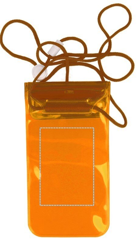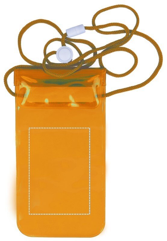 Voděodolné pouzdro pro smartphone z PVC s polyesterovým popruhem. Bezpečnostní spona. Pouzdro má tenčí povrch, který umožňuje ovládání dotykového displaye telefonu z venku.