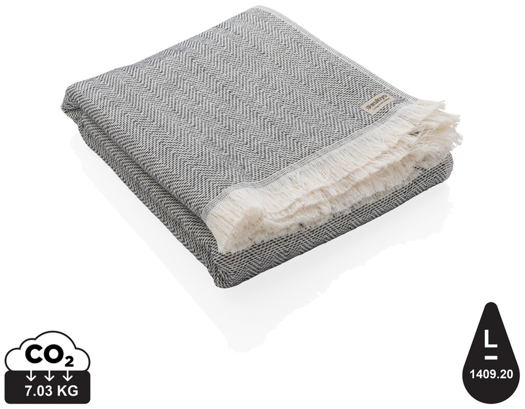 Prémiová a mimořádně všestranná osuška pro každou příležitost. Lze však využít i jako deka, pareo, zábal pro vaše dítě, ale i přehoz přes pohovku či postel. Využití je opravdu neomezené po celý rok. Jsou rychle schnoucí, plísním odolné a velmi snadno pratelné. Proto jsou skvělou volbou i pro alergiky. Vyrobená z bavlny s 22 % obsahem recyklované bavlny včetně skenovatelné složky AWARE™ garantující obsah recyklátu. Pratelné v pračce. Vyrobeno v Portugalsku.