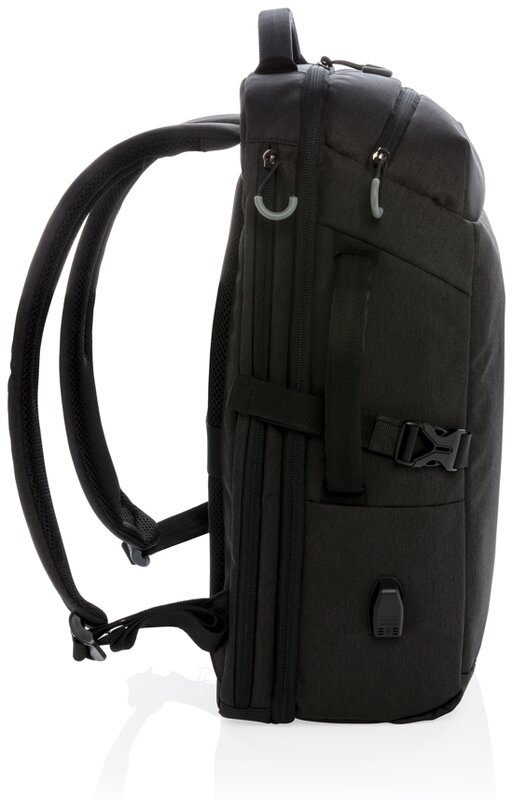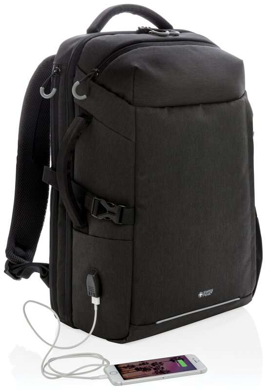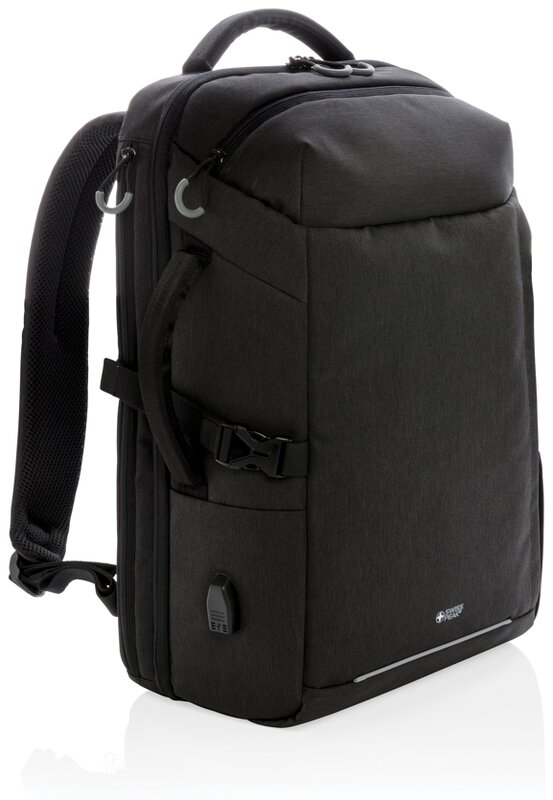 Cestovní batoh ideální na krátké víkendové pobyty. Obsahuje benefity kapacity a způsobu otevírání klasického kufříku, ovšem bez zbytečné zátěže koleček a konstrukce, USB nabíjecí port, popruh k upevnění na madlo kufru, boční kapsu na lahev, kapsy pro rychlý přístup, kapsy s RFID ochranou a polstrovaný oddílu pro až 17” notebook. Výrobek je z recyklovaného polyesteru včetně skenovatelné složky AWARE™ garantující obsah recyklátu. Na výrobu bylo využito 35,5 500ml PET lahví a bylo uspořeno 21 litrů vody. Z výtěžku každého prodaného produktu z kolekce Impact je navíc přispěno 2 % na podporu iniciativy Water.org. Produkt je bez PVC.