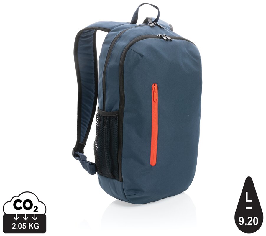 Základní batoh z kolekce Impact pro každou příležitost. Obsahuje spoustu místa v hlavní části na zip včetně oddílu pro 15" notebook, prostřední oddíl s 2 otevřenými kapsami a přední oddíl na zip pro rychlý přístup k drobnostem. Také má pohodlné ramenní popruhy, 2 vnější síťové kapsy na lahev. Ideální pro přenos sportovních věcí nebo na turistiku. Vnější část vyrobena ze 100 % recyklovaného polyesteru 300D, podšívka ze 100 % recyklovaného polyesteru 150D. Včetně skenovatelné složky AWARE™ garantující obsah recyklátu. Na výrobu bylo využito 15,39 500ml PET lahví a bylo uspořeno 9,2 litrů vody. Z výtěžku každého prodaného produktu z kolekce Impact je navíc přispěno 2 % na podporu iniciativy Water.org