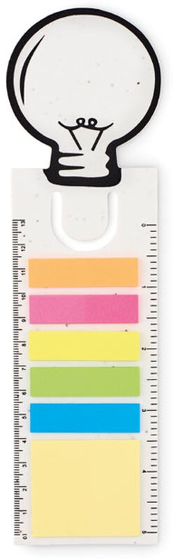 Záložka ve tvaru žárovky, která slouží i jako 13cm pravítko. Obsahuje žlutý samolepící bloček a 5 samolepicích označovačů v různých barvách. Záložka je ze semínkového papíru, po použití semena máku vyrostou, když je uživatel zasadí do půdy.